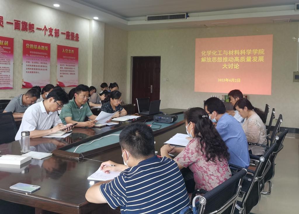 为扎实推动学习贯彻习近平新时代中国特色社会主义思想主题教育走深走实,进一步引导党员干部解放思想、深化改革,推动学院高质量发展,6月2日下午,我院开展“解放思想推动高质量发展”大讨论活动。学院处科级干部、全体教师参加会议。