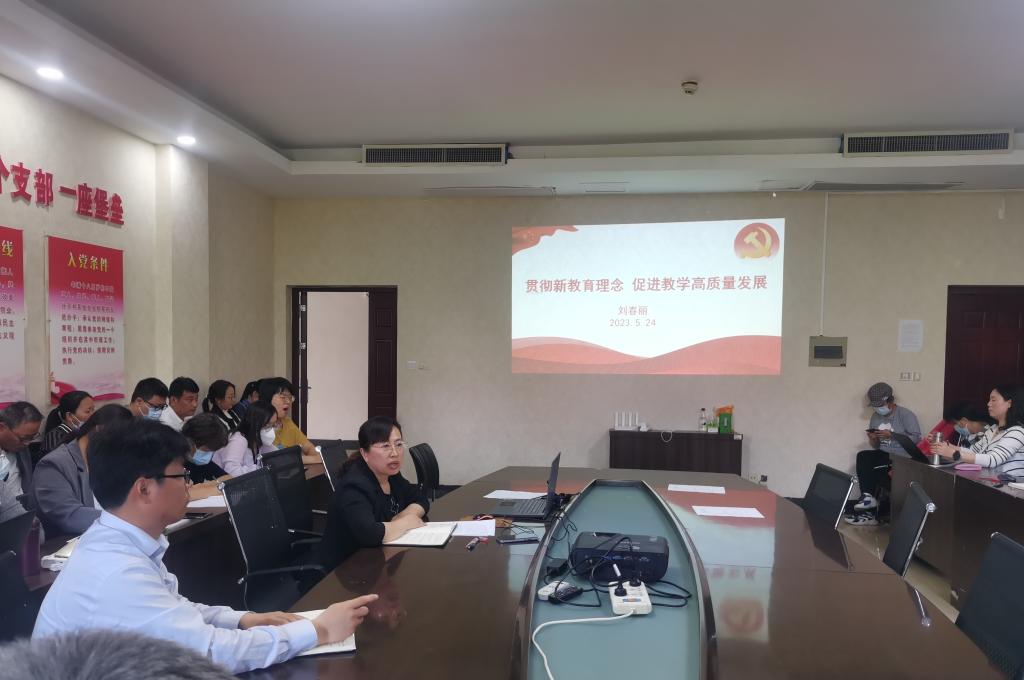 为深入开展学习贯彻习近平新时代中国特色社会主义思想主题教育,全面提升教育教学质量和水平,5月24日下午,院长刘春丽在综合楼1220会议室以“贯彻新教育理念 促进教学高质量发展”为题作专题党课。学院全体教工党员、学生党员代表聆听本次党课。