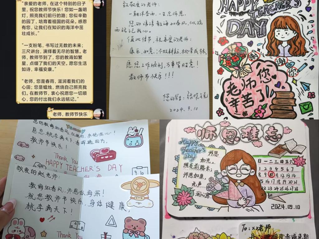 教师节前夕,为表达对老师们的感恩之情,学生们制作了各式各样、丰富多彩的贺卡送给敬爱的老师。同时开展了“笔端生芳华,诗词谢师恩”三行诗征集活动,全院学子踊跃参加,以我笔写我心,用简单的话语、朴实的心意表达对老师的感激之情。