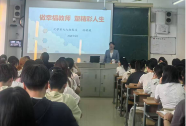 报告中,孙媛媛首先讲述了自己在高中教师、区(县)教体局副局长、中学党总支书等不同岗位的奋斗发展经历,分享了自己累并快乐着幸福的教师生活;接着跟师弟师妹们分析了国家的政策、社会对教师的要求、人工智能对教师的挑战,也分析了目前中小学对化学教师和科学教师的需求;孙媛媛勉励同学们要做好心理转变、角色转变和时刻学习的准备,利用好网络资源、向优秀课堂、教研活动和书籍学习,努力使自己做好“四个引路人”和“四有好老师”。最后,孙媛媛借江苏省锡山中学校长唐江澎的话,鼓励同学们既要自己成为终生运动者(身心健康者)、责任担当者、问题解决者和优雅生活者,也要教育自己的学生成为这样的人。