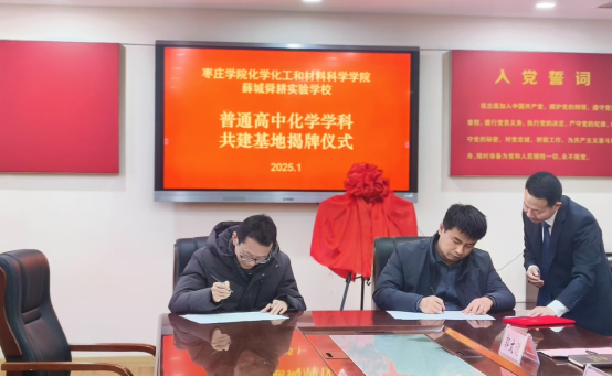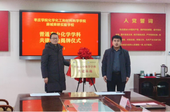 为充分发挥学校人才智力优势和教学资源条件,服务枣庄中学教育,深化合作办学,搭建优质教学实践平台,提升人才培养质量,1月8日上午,学院副院长马杰、化学专业负责人闫春燕赴枣庄市薛城区舜耕实验学校参加“yl7703永利集团校外实践教学基地”和“普通高中化学学科共建基地”的揭牌仪式。薛城区教体局教学研究中心主任郝东蕴、副主任燕传勇,舜耕实验学校校长郭文清、副校长王保才,以及舜耕实验学校化学教研室全体教师一同参加了揭牌仪式。王保才主持了揭牌仪式。
