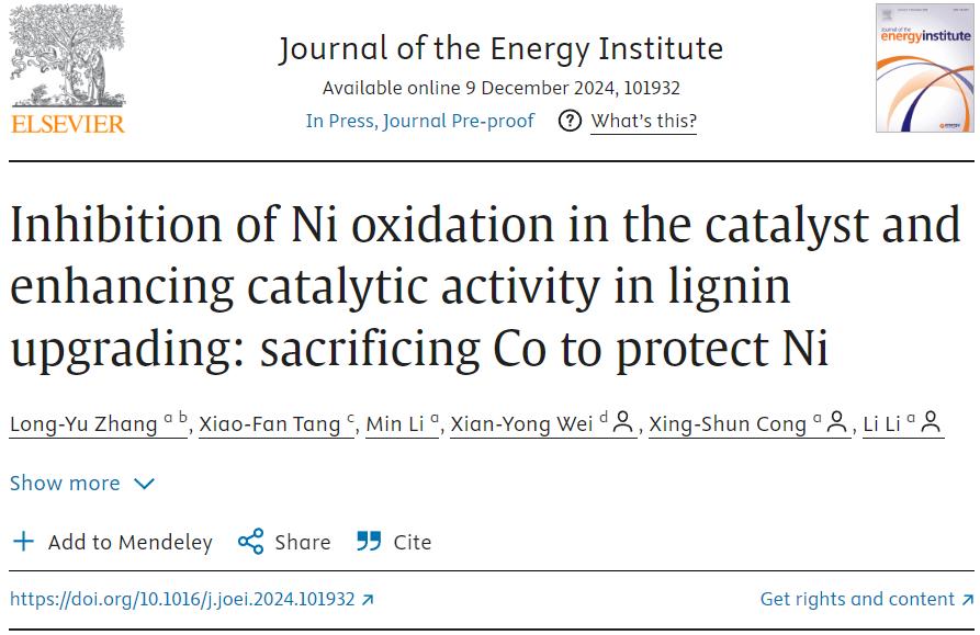 两篇论文分别以《Catalytic hydrodeoxygenation of lignin enhanced by selectively etching ZSM-5》和《Inhibition of Ni oxidation in a Ni-based catalyst to enhance the catalytic activity for lignin upgrading: Sacrificing Co to protect Ni》为题,yl7703永利集团为第一单位,张龙宇为第一作者,李莉和丛兴顺为通讯作者。张龙宇是我校与曲阜师范大学联合培养的硕士研究生,在我校的导师为李莉博士和丛兴顺教授,自2023年10月开始,在我校全职培养,经过一年多的科研探索,取得了较多创新性成果,目前已撰写英文论文5篇,发表2篇。联合培养工作为学校的硕士点建设及下一步独立培养硕士研究生奠定了坚实基础。
