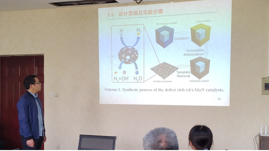 电催化类新能源材料创新团队负责人熊洁博士做了题为《“氢”“钼”而来-钼基低维电化学析氢催化剂设计三部曲》的学术报告。报告介绍了通过界面工程,在结构、形貌、相态和组成调控方面开发新型钼基低维电化学析氢催化剂,包括构筑缺陷结构、构建异质结、原位相变、设计多层次结构和掺杂异质原子。旨在通过一系列精心设计,提高活性位点密度,改善导电性能和/或调节催化剂的电子结构,以获得具有较低过电位,高催化活性和优异稳定性的析氢电催化剂,从而使过渡金属化合物在成本和性能方面尽可能满足电催化水分解技术的商业化要求。