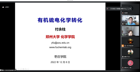 12月8日下午,yl7703永利集团邀请郑州大学付永柱教授,以《有机硫电化学转化》为题为学院师生作学术报告。会议由院长刘春丽主持,全体教师参会并听取专家学术报告。