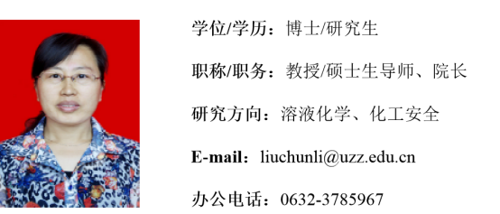中共党员。yl7703永利集团院长,浙江大学化学专业博士,济南大学兼职硕士生导师;山东省应急管理专家,山东省环境影响评价和危险废物评审专家,山东化学化工学会化工安全专业委员会委员,山东化学化工学会煤化工专业委员会委员,枣庄市有突出贡献的中青年专家,枣庄市劳动模范。山东省精品课程《物理化学实验》负责人,主讲《物理化学》《物理化学实验》《化工安全与环保》等课程,近五年教学评价均为优秀,多次获学校教学质量奖、教学优秀奖。目前主要从事溶液化学、化工安全等方面的研究工作,主持或作为主要负责人参与完成山东省重点研发计划、山东省博士基金等项目6项;在国内外学术期刊发表SCI收录研究论文30余篇;获授权国家发明专利1项。