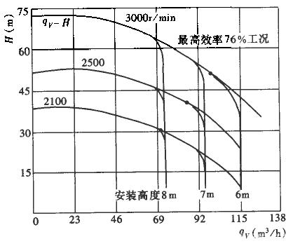 汽蚀使叶轮和液体之间的能量传递受到严重干扰。大量汽泡的存在堵塞了流道,破坏了泵内液体的连续流动,使泵的流量、扬程和效率都明显下降,严重时出现断裂工况。